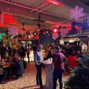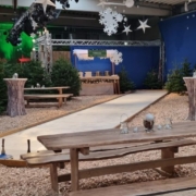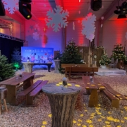 Für ein stimmungsvolles Firmenevent verwandelten wir eine schlichte Lagerhalle in eine festlich dekorierte Weihnachtswelt. Unter dem Titel Waldweihnacht entstand ein Indoor-Erlebnis, das den Charme eines traditionellen Weihnachtsmarkts mit der Atmosphäre eines winterlichen Waldes verband – komplett mit Tannenbäumen, Lichterspielen und verschiedensten Dekorationselementen.